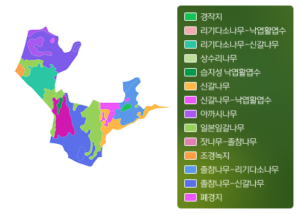 이후 도시환경기능성, 이용성 및 관리강도, 자연성, 생태적 기능성 4개 항목을 기준으로 구분하여 실시한 개별 비오톱 평가 결과1등급, 2등급 4등급으로 구분되었으며, 일부 사면녹지, 묘지 등이 4등급으로, 그 외 산림, 초지는 1~2등급으로 구분되었다. 개별 비오톱 평가결과 1등급은 63.77%로, 남측 산림내부로 존재하는 경향성이 있고, 2등급은 34.82%로 북측 시가지와 맞닿아있는 방면으로 집중되어있음을 확인하였다.