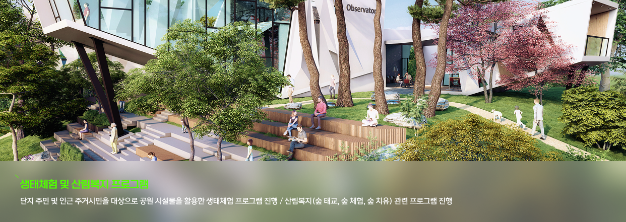 또한, 산림복지(숲 태교, 체험, 치유)와 관련된 프로그램을 활성화하는 것도 가능하다. 능선을 따른 기존 탐방로를 중심으로 거리 기반한 칼로리 계산 안내, 주민걷기대회, 명상, 맨발걷기 프로그램 등이 진행될 수 있다.