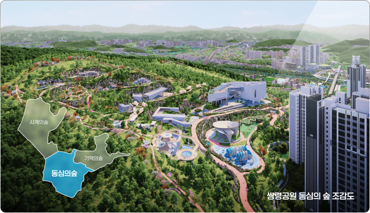 동심의 숲 종합계획도 및 주요 공간